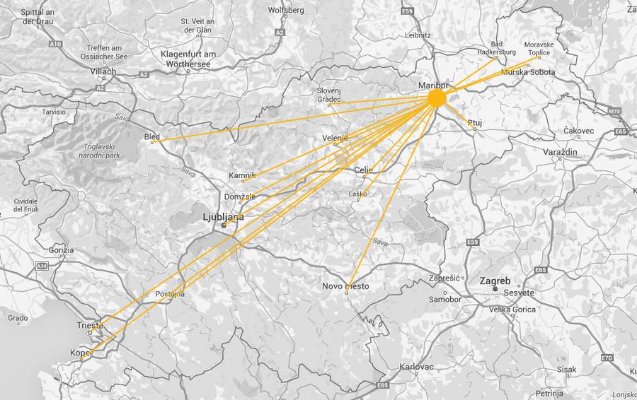 Iz Ljubljane je le dobra ura vožnje, iz Novega mesta ali Bleda slabi 2 uri vožnje in iz Kopra nekaj več kot 2 uri. Soboški obiskovalci ste v štajerski prestolnici lahko že v pol ure!